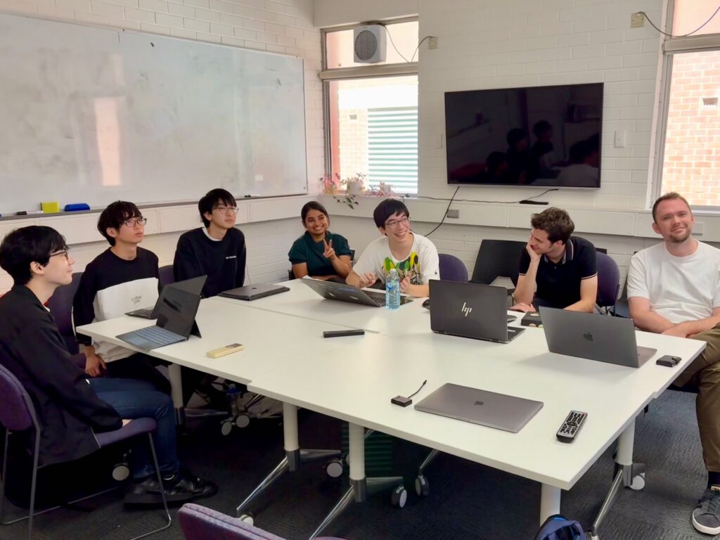 重力波望遠鏡の複屈折問題に取り組むマークさん、ハオユーさん、羽場君、井殿君、竹下君、シャリカさんの、ビッグフットメンバーがアデレード大学を訪問し、重力波望遠鏡テストマスの熱補償と複屈折について議論しました。