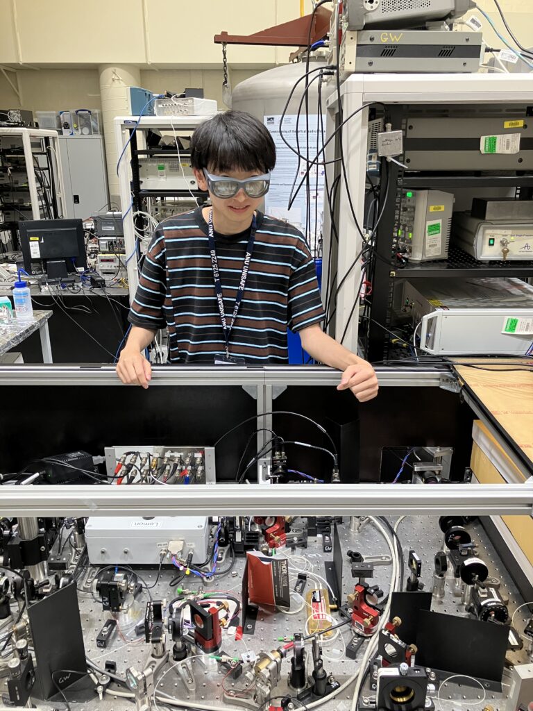 ANUには科学大の学生が半年間滞在しているのですが、すっかり打ち解けていて元気にやっていました。スクイーズ実験の説明をしてくれました(写真)。